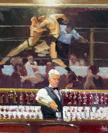 Ken Auster "Fight or Flight" 24" x 20" | Anne Irwin Fine Art offers extensive knowledge, training and experience in selecting just the right artists to suit the tastes of individuals, businesses and corporations at every level. Irwin`s personal philosophy is that art is very powerful and, when displayed, has the ability to either uplift or depress the spirit. It is her goal to uplift the surroundings of the collector with meaningful art painted by dedicated artists. Irwin is an approach- able gallerist, and her gallery is one of the most highly regard- ed destinations for collecting fine art in Atlanta.