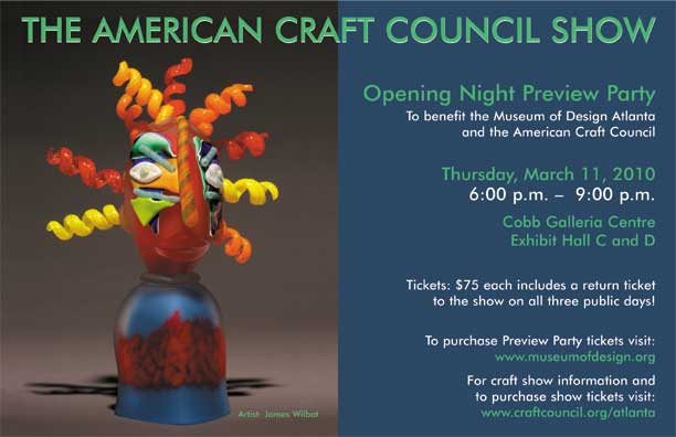 Tickets Now On Sale! for The American Craft Council Show Opening Night Preview Party Thursday, March 11, 2010Proceeds benefit The American Craft Council & The Museum of Design Atlanta The Opening Night Preview Party Thursday, March 11, 2010
